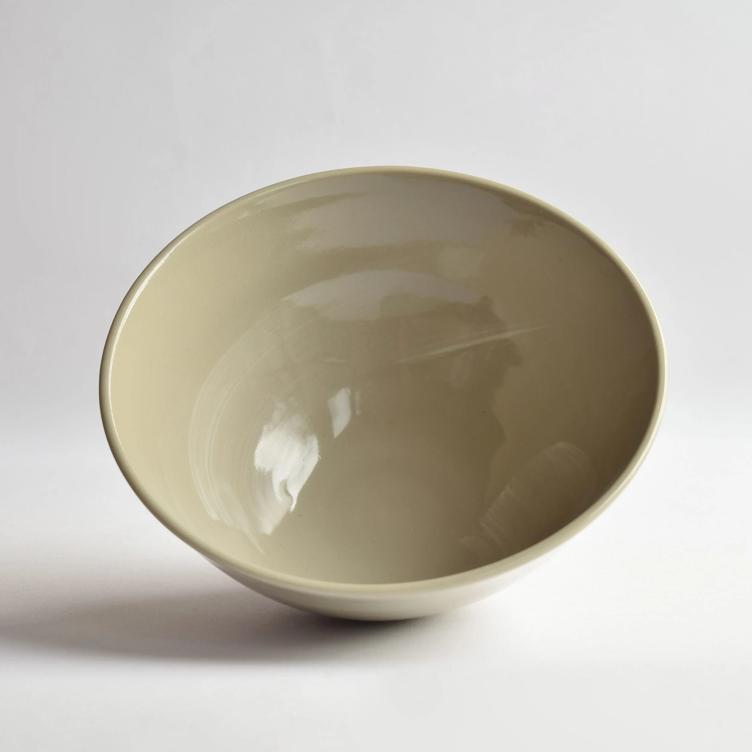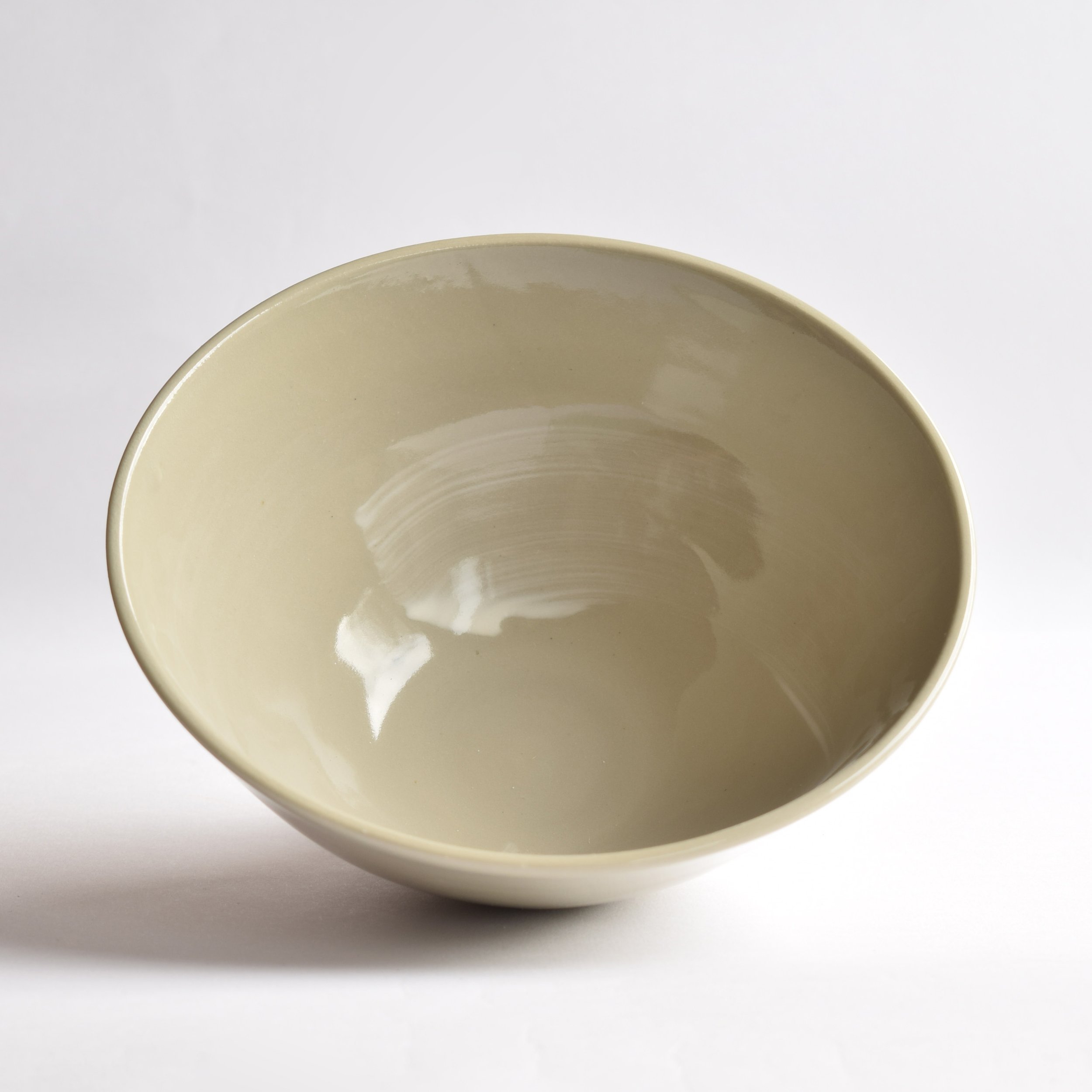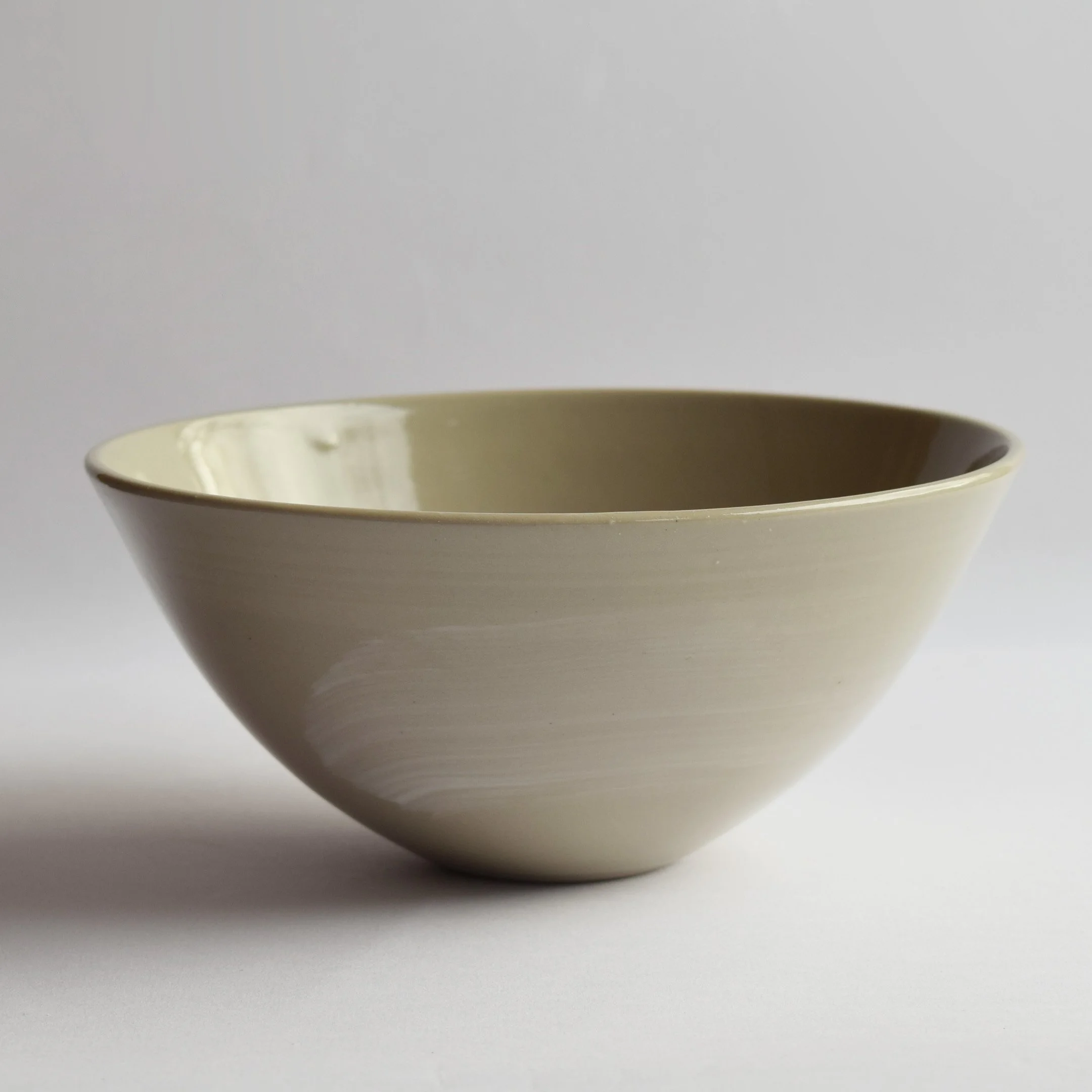Custom stained sage green porcelain bowl with white porcelain brush strokes and clear glaze. This bowl has a small ‘blip’ in the clay on the inside (see pic) but is otherwise perfect.